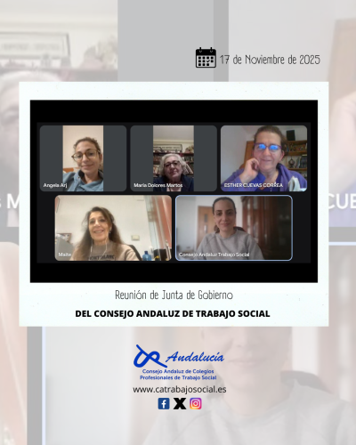 El 17 de noviembre de 2025 se celebró la reunión de la Junta de Gobierno del Consejo Andaluz de Colegios Profesionales/Oficiales de Trabajo Social, desarrollada de forma telemática a través de la plataforma Google Meet, iniciándose a las 17:30 horas y finalizando a las 19:00 horas.