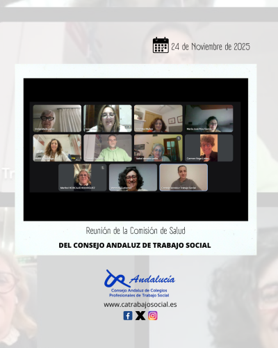 El lunes 24 de noviembre de 2025, a las 17:00 h, se celebró de forma virtual la reunión de la Comisión de Salud del Consejo Andaluz de Colegios Profesionales y Oficiales de Trabajo Social.
