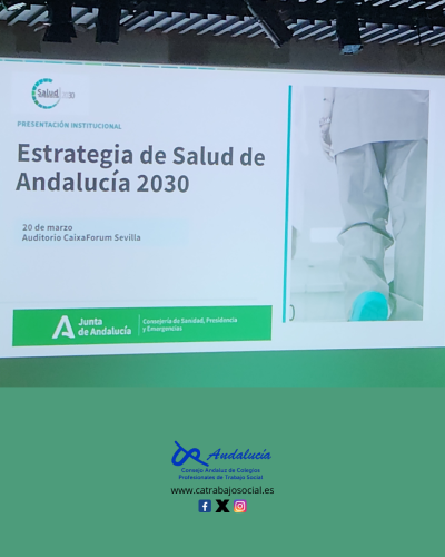 El Consejo Andaluz de Trabajo Social ha estado presente en la presentación institucional de la Estrategia de Salud de Andalucía 2030 (ESA 2030), celebrada el pasado 20 de marzo en el Auditorio del CaixaForum Sevilla.